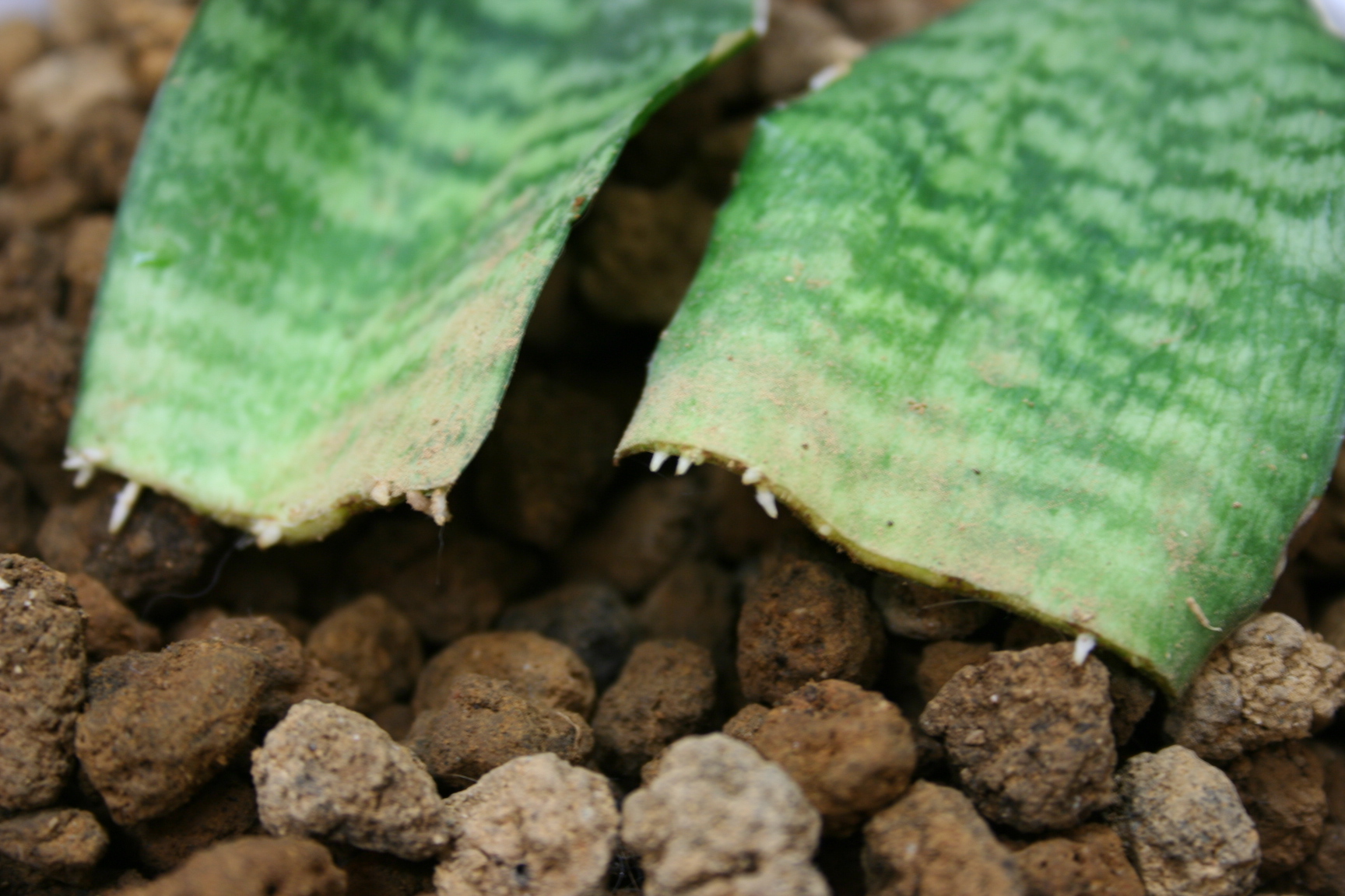 葉刺しにすると縞模様のないサンセベリアが